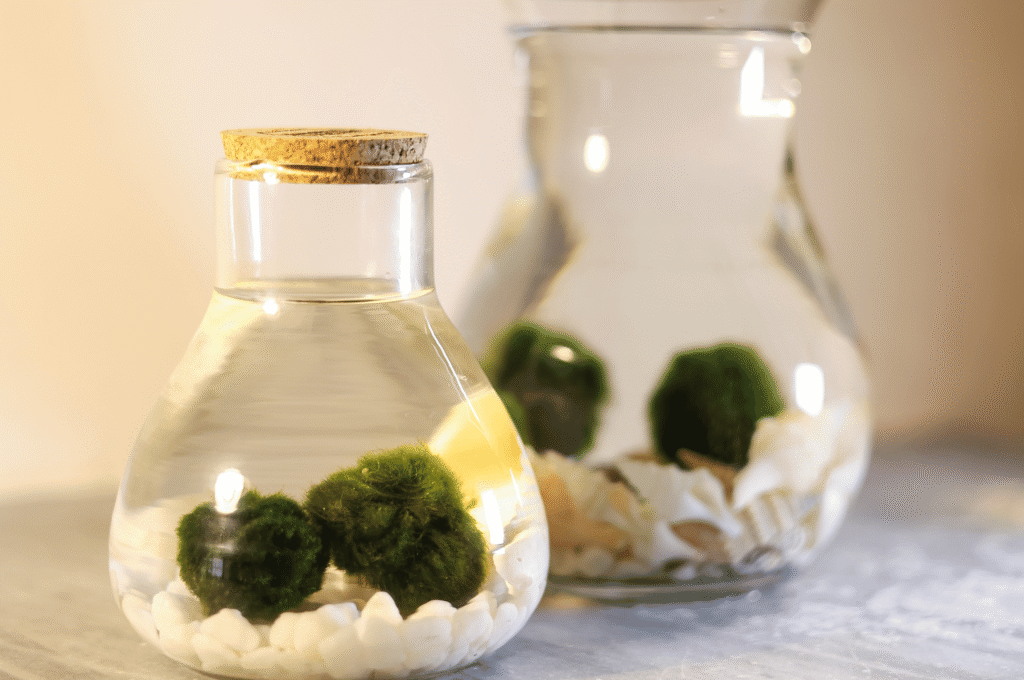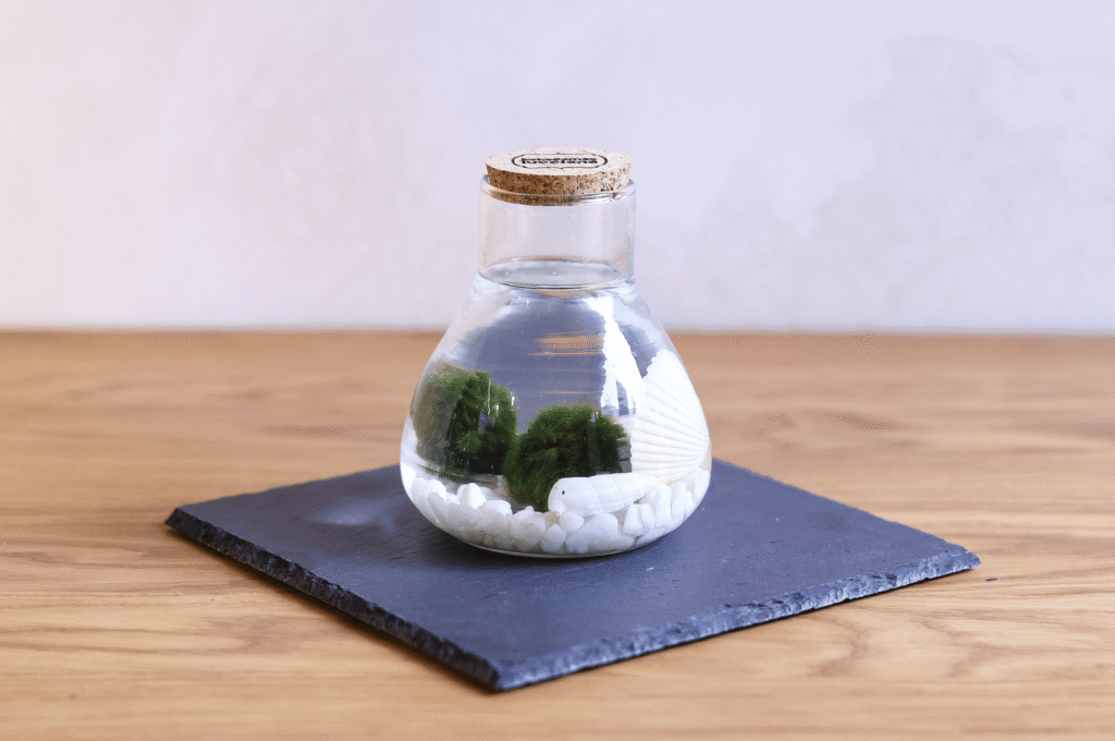 La Marimo transmite serenidad. Su movimiento suave en el agua y su forma perfecta evocan equilibrio y armonía. Es una forma sencilla de incorporar naturaleza viva en espacios pequeños, sin complicaciones.